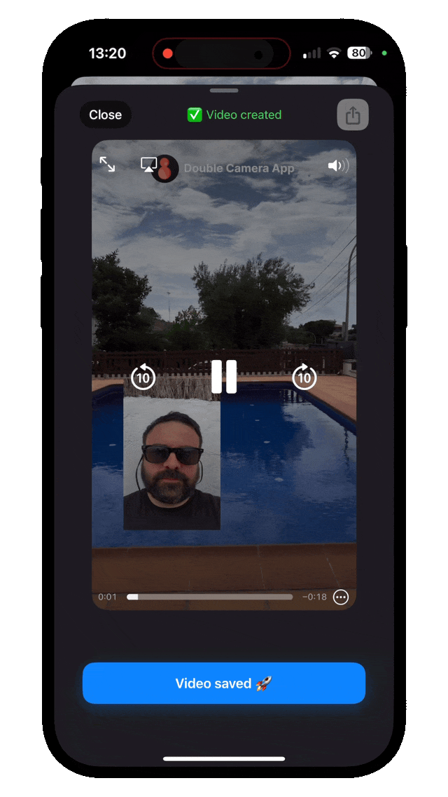 Trim, concatenate, and perfect your dual-perspective video clips with ease.
